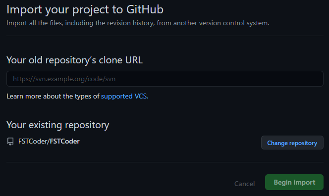 URL 정보 입력란에 복사한 URL 정보를 입력하고 Begin import 버튼을 클릭한다.